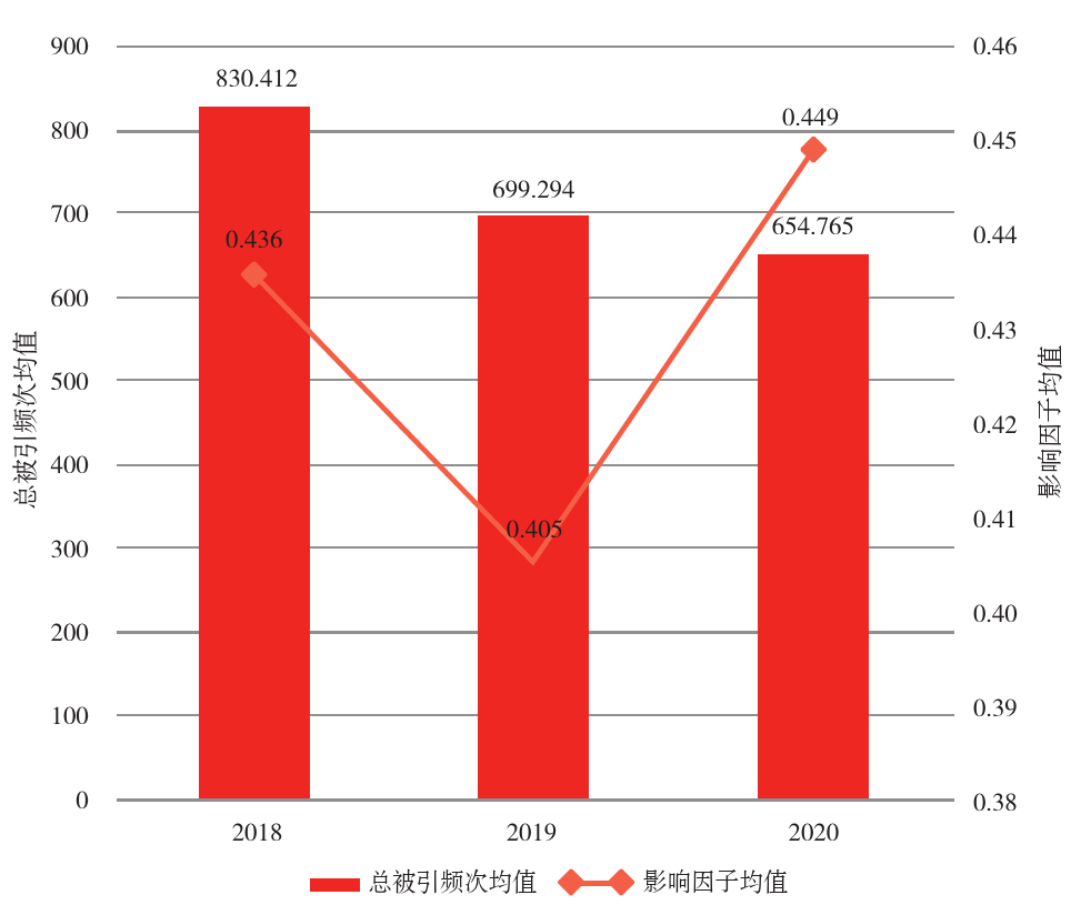 图2  2018—2020年数学领域12种被SCI收录期刊的影响因子均值和被引频次均值