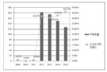 图5  传统出版项目数量及占比年变化情况