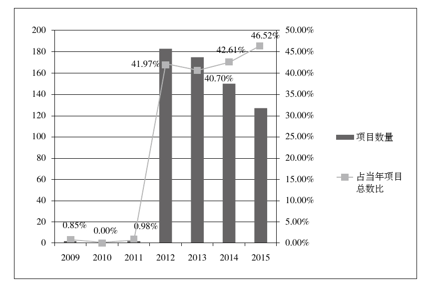 图4  数字出版项目数量及占比年变化情况