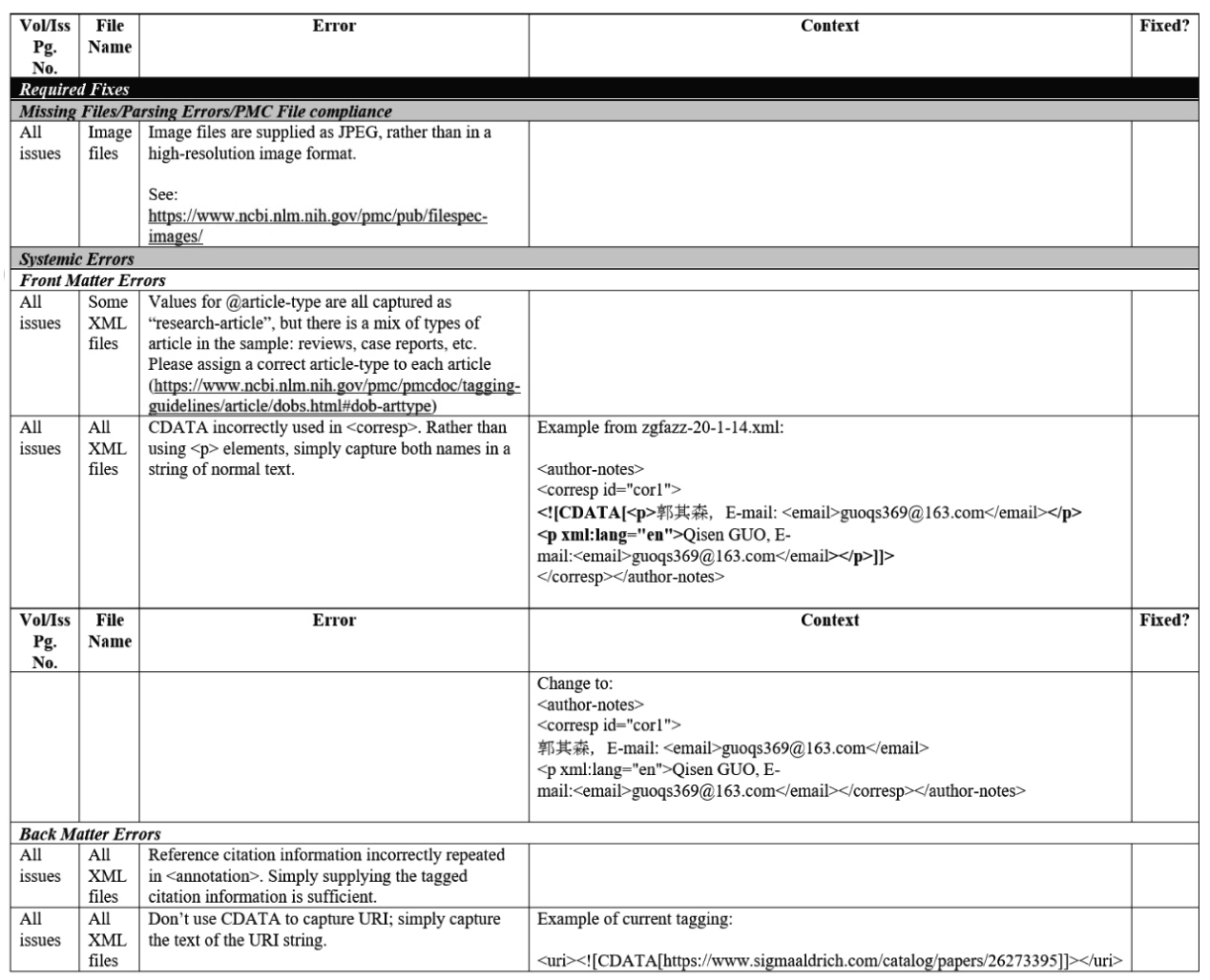 周白瑜,王玥,刘谦,谭潇,石婧. 中文医学科技期刊申请PubMed Central数据文件标准与技术实现[J]. 科技与出版, 2019, 38(05): 112-116.