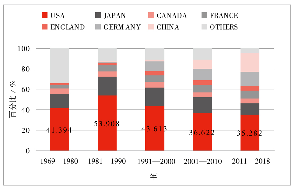 图4   Macromolecules1969—2018年作者分布情况