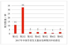 图2  2017年中国学者在美国化学会期刊中发文量的排位统计
