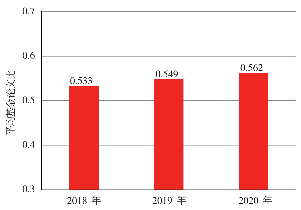 图9  2018—2020年中国中文科技期刊平均基金论文比