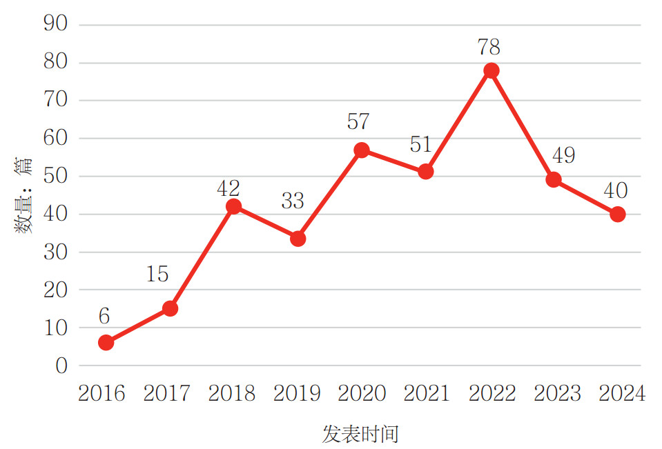 图 1  2016—2024年CSSCI来源期刊主题出版学术论文发表时间分布情况