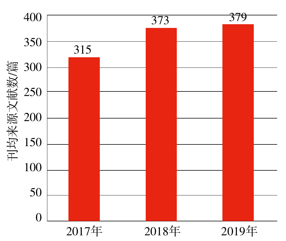 图4  2017—2019年我国中文科技期刊的刊均来源文献数情况