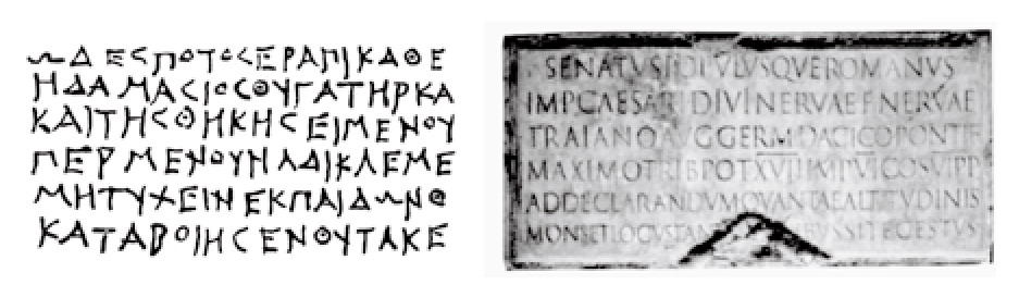在欧洲文字史上,希腊人创立的字母表,因为简便实用而成为文字史上 "最后一次重大创举" 。[4]希腊字母表完整,但早期书写只有大写,没有标点符号,字与字之间不留空,而且各地字母排列也不同,有的是从右往左书写,有的从左向右书写。直到公元前6世纪,大多数的书写者才习惯从左向右书写,这种文字排列方法被最终延续下来。[4]公元3世纪,罗马成为拉丁世界的政治权利主宰,罗马帝国的官方文字拉丁文 "借用" 了其他文字,增加了字母,重新排序字母表。拉丁字母借用了希腊文字的诸多成分,从左向右横向书写传统被沿用并定型。[5]罗马人的军事实力横跨整个地中海并深入西欧大陆,应用简明有效的书写系统在各地推行国家的意志。就这样,罗马人通过征服和行政管理将自己的文字传遍欧洲。自此,西方字母表以及文字使用规范得以确立。(见图5)