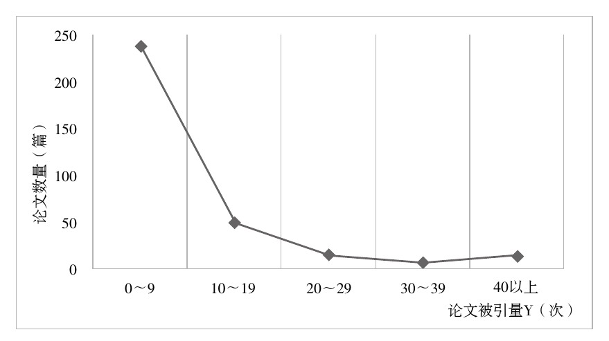 320篇论文的累计被引量是2 852次。图1显示出320篇论文的被引量
