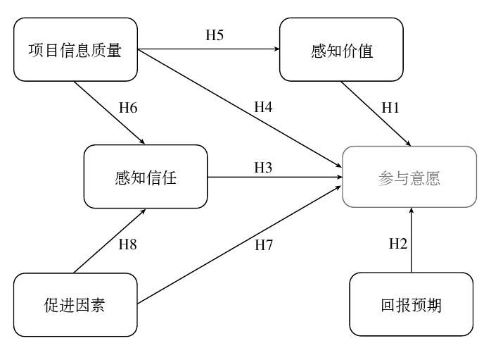 假设H1:感知价值对支持者参与众筹出版的意愿存在正影响。