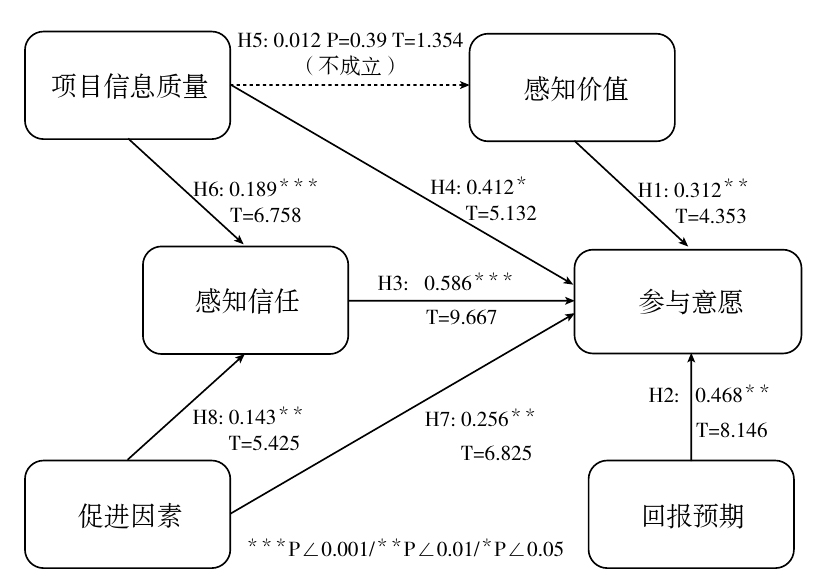 假设H5:项目信息质量会正向影响支持者的感知价值。