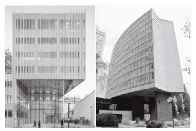 出版社品牌外部环境是增强企业认知力和亲和力的主要品牌视觉形象识别要素,国外优秀出版社外部环境较为注重出版社品牌视觉核心图形,并以此概念为设计依据,充分展现出版社的特征和内涵,并与建筑的功能性、象征性相结合,如法国阿歇特出版集团(图7),大楼外观设计似其品牌视觉形象“H”的造型,个性十足。