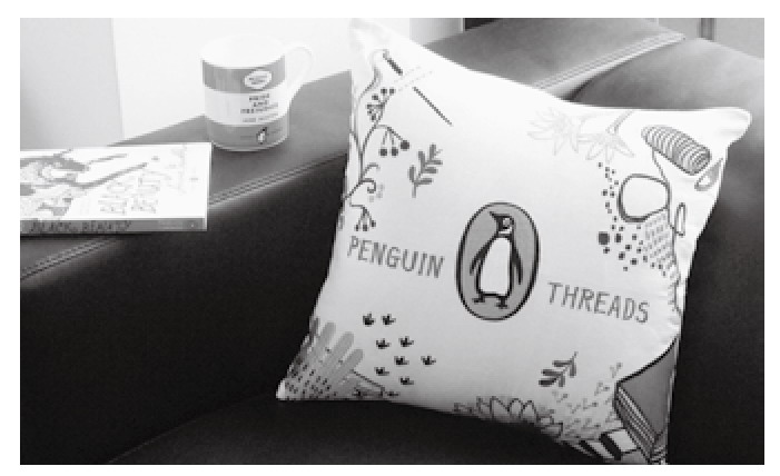 而且,出版社品牌视觉形象需要专门部门进行统一管理。目前,各个出版社的品牌管理职能放在宣传、营销、企划等不同的部门,且缺乏具有专门品牌管理背景的负责人,在品牌视觉形象的使用方面,仅仅依靠约定俗成的规矩,具有随意性和自发性,缺乏统一培训与指导,导致品牌视觉形象使用混乱,甚至出现了错误使用品牌视觉形象的情况出现。品牌视觉形象的应用不只是在书籍、名片、宣传册等常见业务及办公用品上使用,还应保证在内外部建筑环境、交通工具、服装服饰、广告媒体、公务礼品、陈列展示等多方面、全方位保持视觉形象传播的一致性。另外,根据受众群体年轻化、生活化、个性化特征,出版社品牌视觉形象衍生品也可增强品牌亲和力和与受众群体的互动性,比如兰登书屋(Random House)在为配合个别图书的特色,以其经典的“三段式”品牌视觉形象设计为核心,单独设计出了企鹅刺绣工艺靠枕套(图8)、《牡丹亭》《仲夏夜之梦》400周年丝巾主题纪念套装、茶几、躺椅、环保袋、马克杯、护照夹、名片夹、“On The Road”主题拉杆旅行箱等在内的近百款图书衍生产品,极强的视觉形象的应用拓展性让受众对出版社品牌的认知从阅读领域延伸到了生活理念、生活方式层面,出版社品牌的价值得到最大程度的提升。