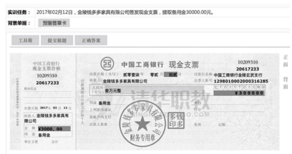 (2)虚拟仿真操作。无论是原始凭证、记账凭证还是各类账簿、报表等,全都与真实业务中的最新版本一致,学生不用进入企业实习就可以接触到真实的业务场景和单据,在线进行虚拟仿真操作,如填写记账凭证、登记账簿、编制报表、画线、盖章、生成支付密码等。