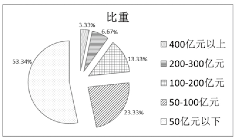 国家新闻出版产业基地中超过半数产值在50亿元以下,400亿元以上的出版基地占比较少,中间比例的出版基地产值比较少,说明我国出版基地发展较为落后,出版业国际传播发展的基础设施建设严重不足,见图5。
