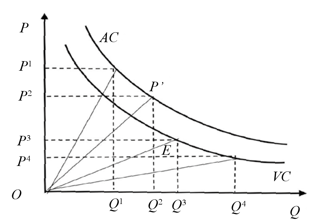 如图3所示,图书价格与订购数量成反比,不同订货数量Q1、Q2、Q3、Q4获得的发行折扣分别为P1、P2、P3、P4。当售价为P1和P2时,图书利润都在合理的范围之内。但随着折扣幅度的增加,折扣价格降至P3,实洋虽已无法覆盖生产成本,但从短期均衡来看,此价格仍然高于变动成本。考虑到出版企业是固定成本高的行业,为减少亏损,出版企业仍会以此价格继续生产。直至折扣价格降到P4时,此时价格既不能覆盖生产成本,也不能补偿变动成本。此时,出版企业继续生产就会变为停止生产。