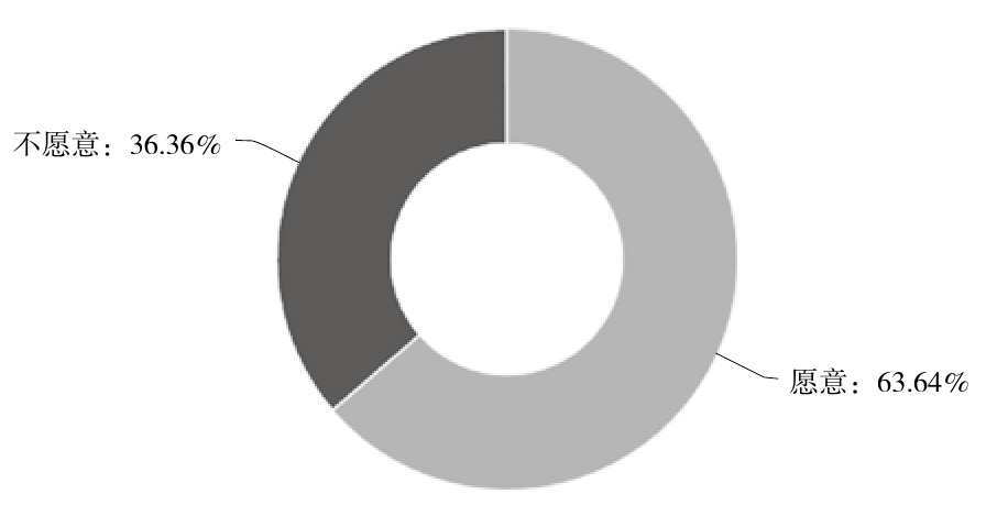 发表论文时,愿意“为论文制作1分钟语音介绍”和“朗读论文摘要”的科研人员比例分别占63.64%和39.39%,见图6和图7。