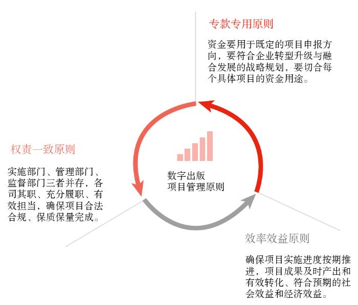 数字出版项目的管理要遵循权责一致的原则,或曰"裁判员与运动员分离原则",即项目的实施部门、管理部门、监督部门三者并存,各司其职、充分履职、有效担当,确保项目合法合规、保质保量地完成和落地。