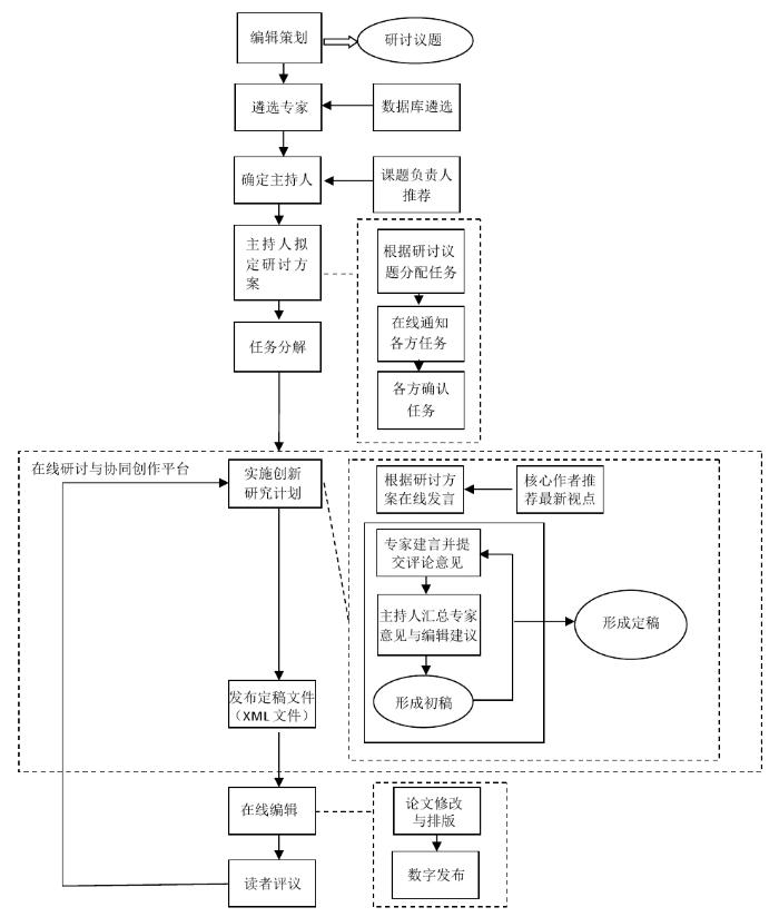 如图1所示,协同研究与协同创作学术平台的讨论与评论机制,将使核心作者(研究人员)、学科专家、课题负责人与期刊编辑之间的在线交流与互动成为可能,任何有价值的创意都会被实时记录,研讨流程将按照预定的计划有条不紊地推进。