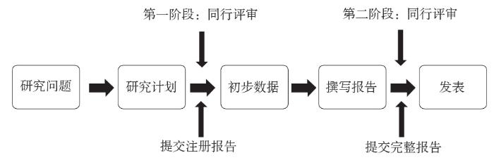 注册报告与传统出版模式最大的不同之处在于,是在完成整体研究之前进行同行评审,还是在完成研究整体之后进行同行评审。传统出版模式是在收到论文投稿后对论文进行同行评审,通过则表示期刊接收该论文并进行发表,而注册报告这种形式允许研究人员在实验之前先向期刊提交他们的研究问题和试验计划以供同行评审,若通过则表示接收,只要研究人员在注册报告的第二阶段按照第一阶段的计划和方法进行实验,文章就会在第二轮同行评议后发表。因此,注册报告具备两个重要特点:一是在产生研究结果前进行同行评审;二是论文不会在第一阶段因为研究结论被拒稿。[9]