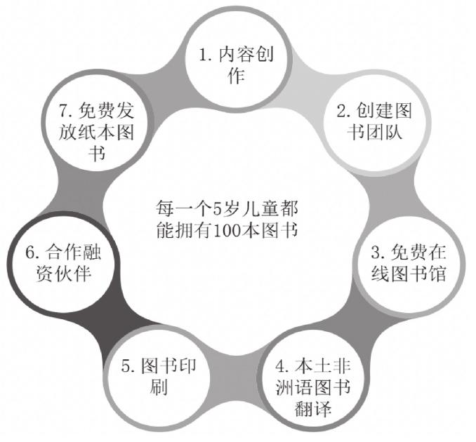 二是以民间组织或者个人等为主导者,通过建立合作关系的基金组织,联合内容志愿者,直接将原创的数字文本制作成纸质文本,免费面向南非不同语种的儿童服务。例如BookDash出版服务项目,该项目由三位南非投资人共同出资成立,于2014年开始正式上线。其业务流程就是通过召集大批志愿者,以小组负责制的方式创作童书,经过审核加工后分别在官网、官方APP和其他故事书平台上线,提供在线的免费阅读;同时,将数字内容纸本化,和社区、医院、学校等加强合作,将免费图书送达到适龄儿童身边(见图3)。