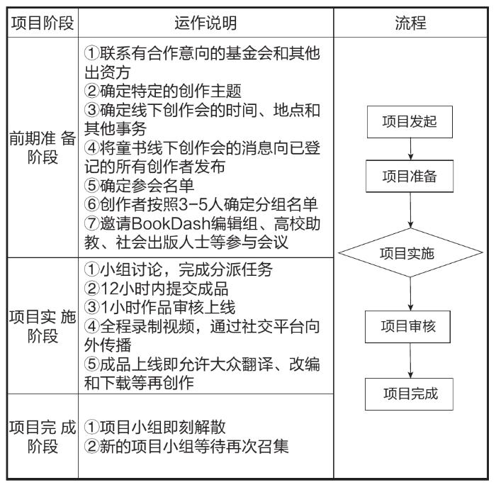 项目小组负责制赋予了志愿者成员极大的创作自由,充分发挥了社会专业人士的积极性和创造性,保障了文本内容的持续高效供给。BookDash的社会影响力和可持续发展的能力与单个项目小组的完成质量紧密结合,赋予每个参与者强烈的使命意识和社会责任意识。同时,同期多个项目小组分别完成同一个主题创作,在一定程度上可以反映参与者的核心竞争力,如此良性竞争的环境有助于儿童出版项目的提质增效。这种灵活机动的项目小组负责制不仅可以高效完成线下的出版创作活动,也完全可以担负起全球疫情期间的图书制作工作,如2020年1—4月,BookDash团队以线上工作组的方式发布原创非洲童书36部,从确定选题、作品讨论、作品制作到作品上线全部在线完成。另外,BookDash核心团队由经验丰富的出版专业人士和具有一定社会影响力的人员组成,采用联合创始人的企业管理方式,依靠稳定的管理团队和成熟的董事会制度吸引更多的内容志愿者加入到项目小组,以完成同一个愿景—“每一个非洲孩子在5岁以前拥有100本童书”。