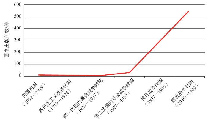 解放战争时期,随着我军规模与实力的不断壮大,军队的报刊出版得到了空前发展,被学者称为军队报刊出版的“黄金时代”。实际上,图书出版也不例外。以军事图书为例,根据国家图书馆“革命文献与民国时期文献保护计划”项目组织实施的“民国时期文献普查”结果显示,1946年至1949年,共出版军事图书533种,较民国其他时期的出版有较大增长,如图1所示,其种类之多、再版之繁、受众之广均创民主主义革命时期出版之最。