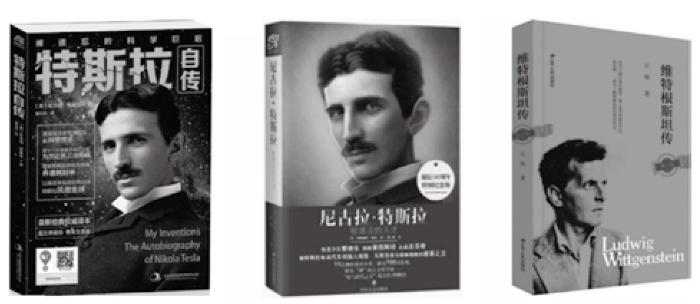 在主图之外,人物传记类图书封面有时会搭配少许副属性图标(图案),以起到补充或推广效果。V社2015年出版的《特斯拉自传》将二维码图案设计在封面上(如图11所示),虽然起到一定推广延伸效果,但破坏了封面的艺术美感,不如将其置于封底条形码附近或腰封位置;W社2016年出版的《尼古拉·特斯拉:被埋没的天才》封面贴上了黄色的圆形图标,以期突出该书的卖点——“诞辰160周年特别纪念版”,但从视觉美观角度考量,这一图标如放置在封面腰封的左上角或右上角,封面效果会更好;X社2018年出版的《维特根斯坦传》(修订版)较好地安排了此类副属性说明、装饰图标(图案),该书为了凸显“修订版”的卖点,特意设计了模仿邮戳的图标,其中包含“修订版”字样,与书名搭配,实用且美观。