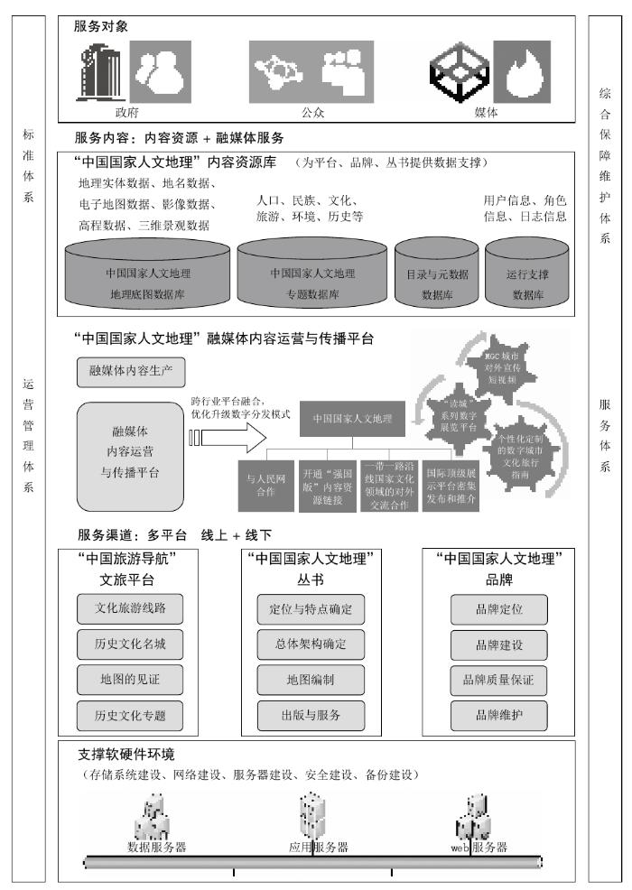 “中国国家人文地理”内容资源库具备相应的数据标准和多平台协同管理体系,可为中国国家人文地理融媒体平台、“中国国家人文地理”丛书提供数据支撑,促进资源共享,建立综合交换保障维护及服务体系,可服务于政府、企业和公众,内容也可推送至纸媒、网站、App等不同渠道和端口,实现数据的全球共享和应用。