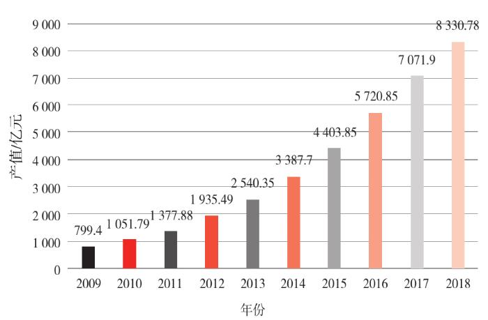 在第九届中国数字出版博览会上,《2018—2019中国数字出版产业年度报告》发布,根据该报告,2018年国内数字出版产值达到8 330.78亿元,比上年增长17.8%(见图1)。