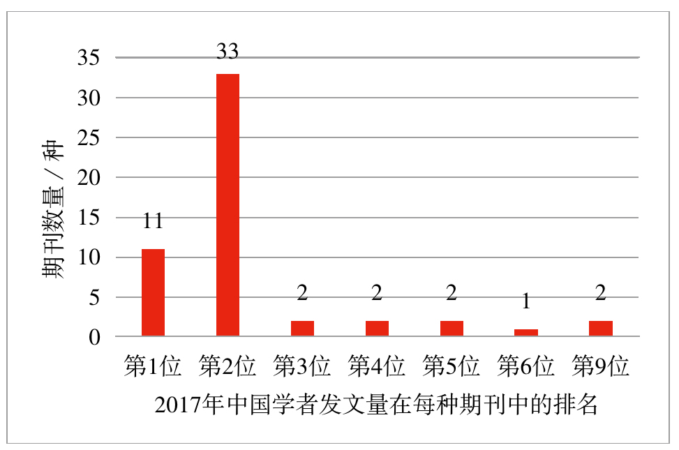 2017年中国学者在美国化学会期刊中发文量的排位统计