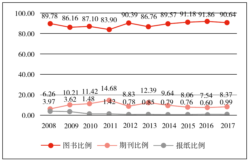 2008—2017年我国传统出版物出口结构
