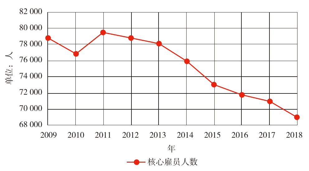 德国图书市场核心雇员人数变化趋势