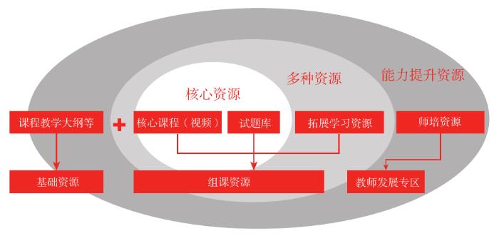 为了适应在线教育及混合式教学的发展,编委会专门规划了智能制造专业课程资源包。该资源包从形式上打破了单一的MOOC模式,资源兼容形式多,可以不断扩展填充,其目的是更方便任课老师在备课授课时的碎片知识重组,在采用翻转课堂、线上教学、混合式教学形式时更有优势。该资源包建设架构中包括课程基础资源、组课资源和教师发展专区(见图2),帮助教师快速全面地了解该课程的主要教学内容,并运用各类数字资源开展教学活动。