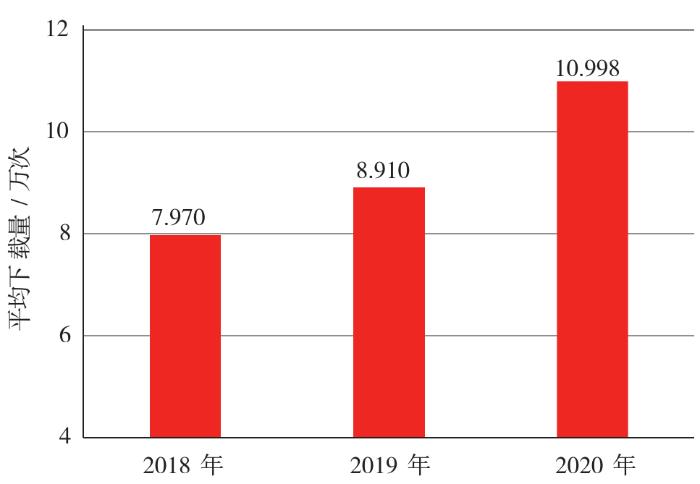 2018—2020年,我国中文科技期刊的平均下载量与平均引文数情况如图7与图8所示。由图可知,这3年我国中文科技期刊的平均下载量与平均引文数逐年上升。2018—2020年我国中文科技期刊的平均下载量分别为7.970万次、8.910万次、10.998万次,平均引文数分别为14.803、15.650、16.596,均成持续增长的发展趋势。与2019年相比,2020年我国中文科技期刊的平均下载量增长23.4%,平均引文数增长6.0%,平均下载量的增长率高于平均引文数的增长率。由于阅读方式的改变,下载量直接体现了读者对期刊的关注度,引文数更是与期刊的影响因子和总被引频次呈正相关。通过对数据的统计分析可知,平均下载量和平均引文数的持续增长,直接带动了平均综合影响因子和平均综合总被引频次的持续增长,促进了我国中文科技期刊的影响力的提升[9]。