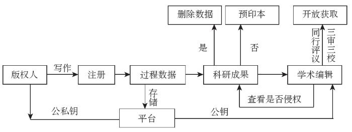 “中心化管理机制”在版权生态中的核心功能日益弱化,“点对点信任机制”在推动版权管理变革性创新中的作用凸显。本文提出“去中心化开放获取平台”(以下简称“平台”)建设构想,鼓励科研生命周期进一步开放。学术编辑对“版权清晰”的论文进行预印本发布,因此,预印本平台不再单独进行应用策略分析。