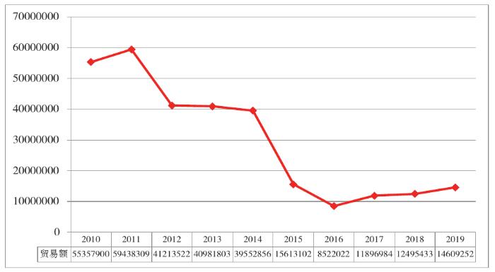 2.1 贸易规模:贸易总额自2012年起总体下降,2017—2019年有小幅反弹