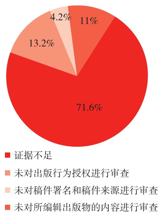 在中国裁判文书网上以《著作权法司法解释》第二十条为法律依据检索出该解释出台至今涉出版者合理注意义务的有效案件共428件,50%以上的案例因作为被告的出版者证据不足无法证明不存在主观过失,而未能进入出版者是否尽到合理注意义务的实质审查阶段。如上所述,出版者对其合理注意义务的达成负有举证责任,在侵权事实明确的情况下,若其举证不能将承担赔偿责任。在上述428个案例中,95.3%(402个)的案例中法院判定出版者未尽到合理注意义务,其中71.6%(288个)的案例中出版者因证据不足而无法证明其尽到了合理注意义务,因而被法院判定承担举证不能的不利后果,需要承担赔偿责任(见图1)。