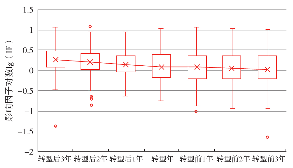 样本期刊OA转型前后影响因子分布