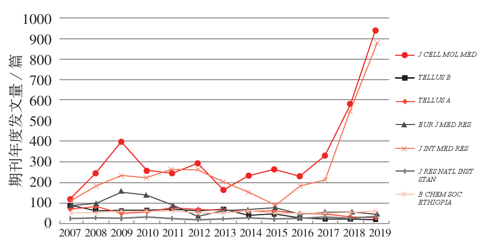 7种代表性OA转型期刊2007—2019年发文量情况
