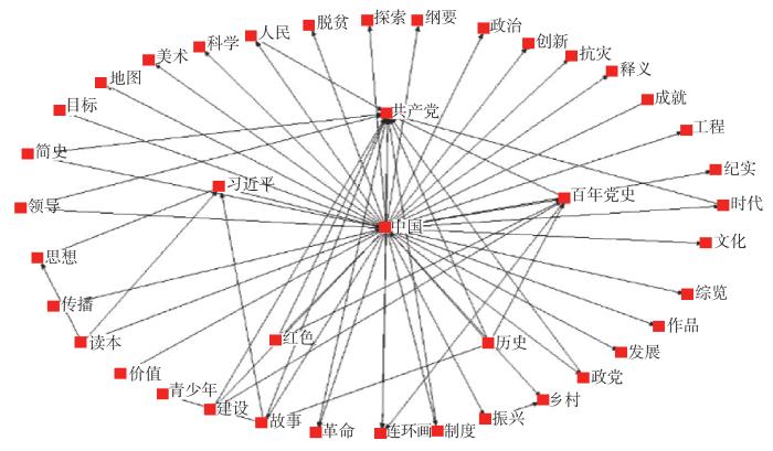 从图1来看,核心主题词“中国”位于网络的绝对中心,表明选题内容重点关注中国的发展成果。围绕在核心词“中国”周围的2级高频主题词为:“共产党”“百年党史”“历史”“习近平”“红色”等,反映出2021年主题出版选题主要围绕中国共产党成立100周年、习近平新时代中国特色社会主义思想、全面建成小康社会、打赢脱贫攻坚战、宣传阐释中央精神和重大决策部署、深化社会主义核心价值观、为党做好中国出版宣传工作等内容。而“故事”“丛书”“连环画”等主题词则进一步说明,2021年主题出版选题多以丛书形式呈现,采用讲故事的叙述方式和连环画的呈现方式向广大青少年读者倾斜。