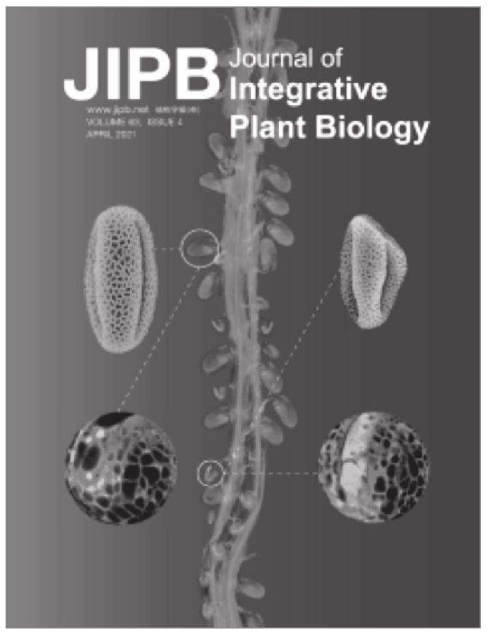 中文期刊刊名须采用中文,可以辅以英文或英文缩写,比如,《知识就是力量》(KNOWLEDGE IS POWER)《地球科学》(EARTH SCIENCE)《新建筑》(New Architecture),但从字体、字号来讲更加突出中文刊名。我国出版的英文版科技期刊受众为英语读者及我国专业学者,但《规范》要求封面仍需要出现中文刊名,如《植物学报》使用英文缩写“JIPB”(Journal of Integrative Plant Biology)加全称作为刊名,小字号中文,既满足了《规范》要求又突出了英文刊名,见图2。