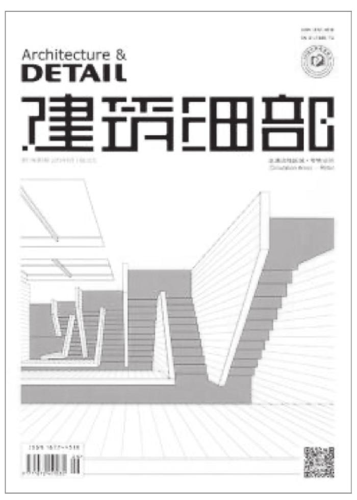 《国标》(第5条)中明确指出期刊的封一应标明以下项目:刊名、出版年、期号、卷号(非必要)、主办者、出版者(非必要)、中国标准连续出版物号及条码等项目,此外,还可以出现封面图像、封面文章名及其他重要文章名、期刊标识、宣传语、定价等。《规范》要求同一期刊每年度中版式设计风格应基本保持一致(第9.2.7条),各期幅面尺寸应保持一致(第9.2.8条)。期刊名称一般放置在封面顶端明显的位置,即便在封面其他位置也要通过空间、色彩、明暗等对比使其突出。为保持期刊一致性,排版通常采用模版,利用网格来布局视觉要素。比如,《建筑细部》(见图6)封面以白色为主色调背景,凸显专业抽象的线描建筑细部特写,以此指代建筑、景观、室内作品的结构效果、技术构造与手法表现,揭示技术与艺术的同构关系。上部约有1/3空间留给期刊名称,英文采用无衬线字体,突出“细部”的英文“DETAIL”;中文借用建筑材料砖块般的笔画,与封面图像左右对齐,底部两个角落布局条形码和二维码。整个版式空间张弛有度,封面设计特色与期刊定位一目了然。
