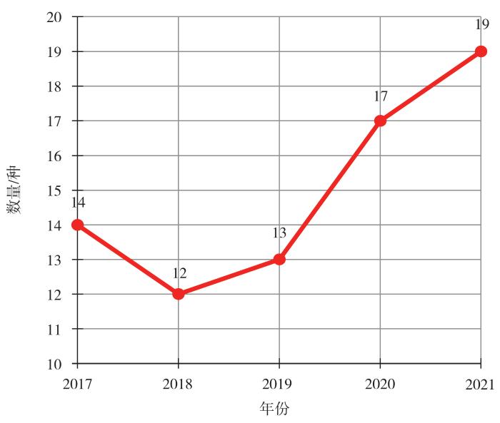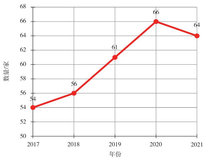 | 2017 | 2018 | 2019 | 2020 | 2021 | 出版机构数量/家 | 出现次数/次 | |