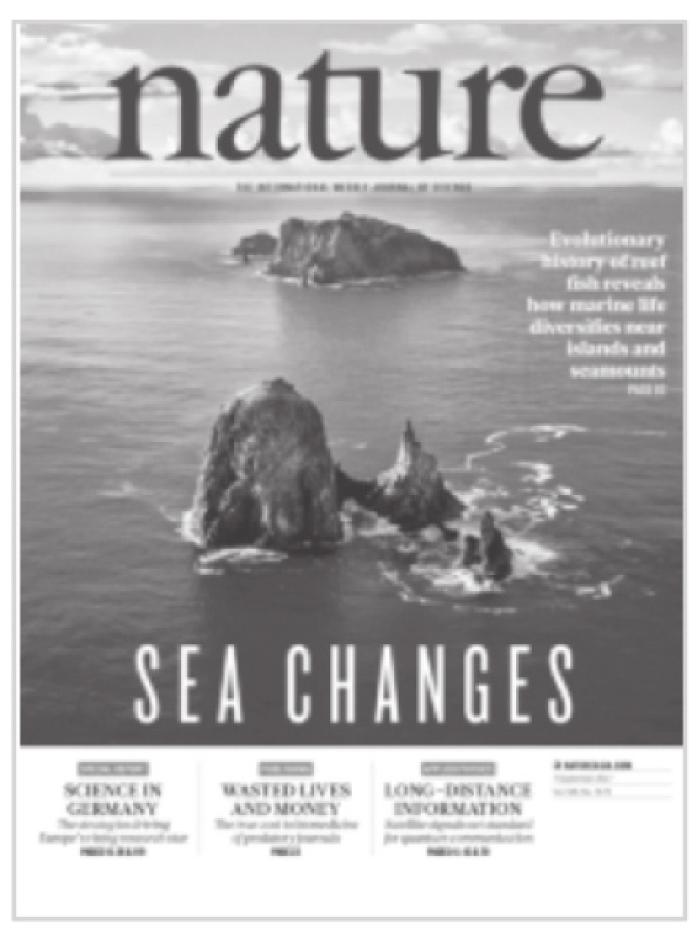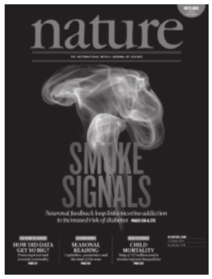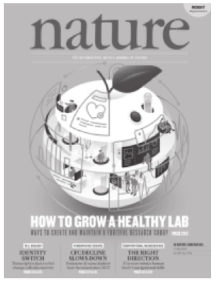 作为科学研究的前沿期刊,Nature在探索科学语言的表达力与科学研究内容的感染力方面进行了积极实践。Nature的封面设计注重图片原创性、文字设计精致性,使“图”与“文”在排版中产生互动,将科学语言通过直观且具象的形式传递出来,在传播科学知识的同时展现设计艺术之美。