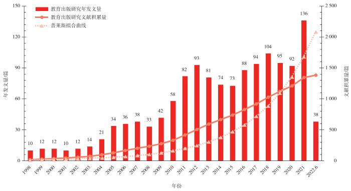 在研究方法上,本研究采用定量和定性结合的混合研究方法。其中,定量分析主要采用数理统计、科学知识图谱剖析教育出版领域科学知识的发展进程与结构关系;定性分析则主要使用内容分析法描述该学术场域的热点关切和变迁趋势,以期全面、准确地揭示教育出版学术场域的结构特征及其演变态势。