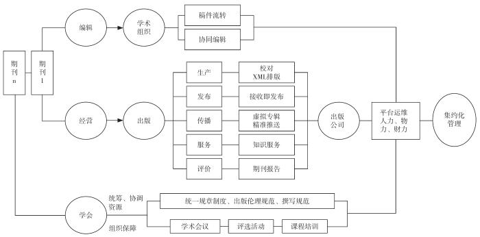 科技期刊全产业链是涵盖内容生产、编辑、出版、传播和应用等节点的复杂系统。科技期刊全产业链条前端为内容供应,后端为内容应用。[9]近年来,国内部分科技期刊打破传统出版的编辑部管理定式,期刊编辑部向“编辑与出版”分离发展,采用国际化的编辑出版流程分工,科技期刊专注于选题策划、同行评议等内容生产环节,而将内容加工、数字传播等信息技术工作交由专业化的服务提供商完成。这种专业化的分工有助于效率的提高和生产力的解放。