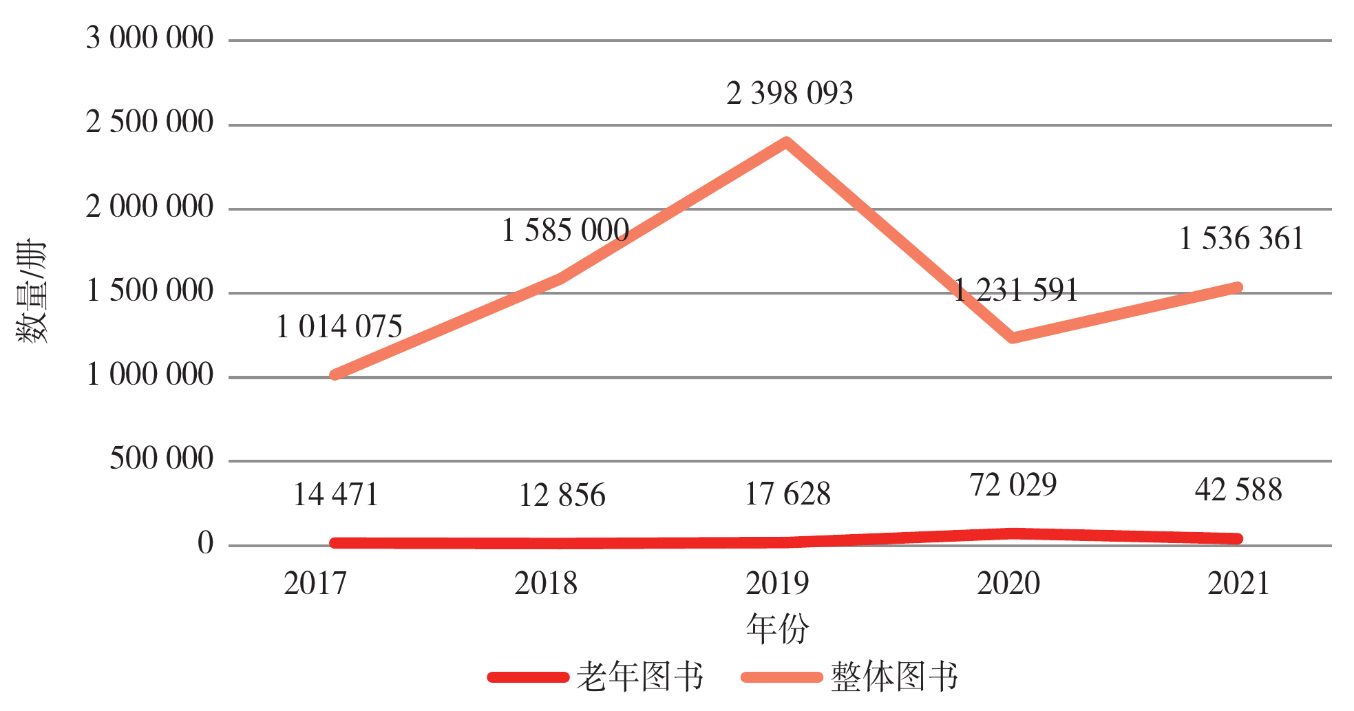 2017—2021年图书市场和老年图书市场单品种图书最大销量对比