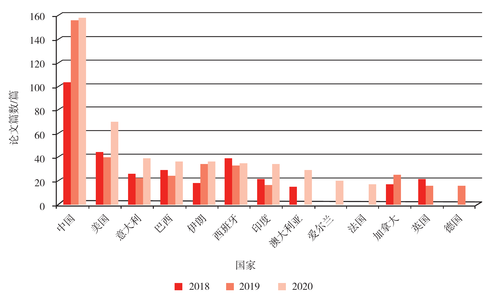 2018—2020年WoS数据库食品科技学科高被引论文和热点论文数Top10国家