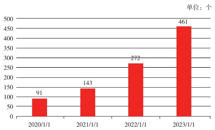 受新冠疫情影响,学校停课、公共图书馆暂停开放,居家工作学习使人们的阅读需求高涨。在此背景下,日本加快建设电子图书馆,电子图书馆发展迅猛。(见图2)据日本电子出版制作和流通协议会的最新数据,截至2023年7月1日,提供电子图书馆服务的地区累计达到508个,电子图书馆为403个。引入电子图书馆的地区比例已达到28.4%,可使用电子图书馆服务的居民人口占日本总人口的比例也达60.7%。