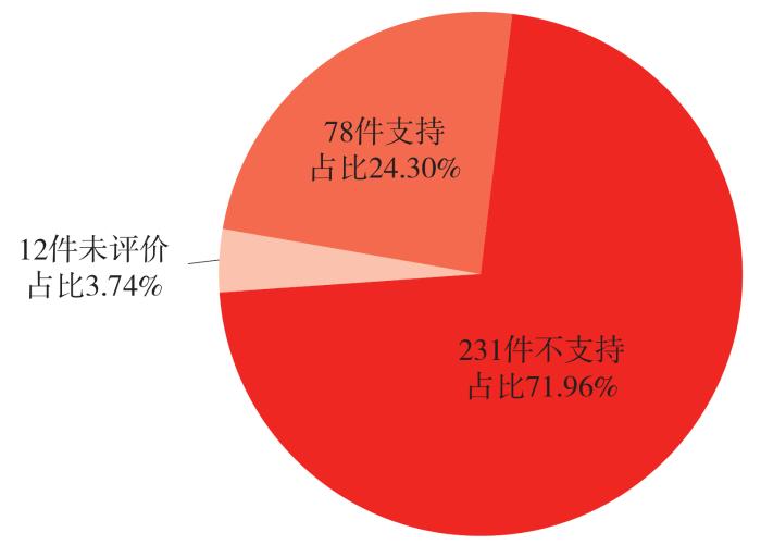 但笔者的统计结果却并未表现出此种趋势。在321份案例中,剔除12份未评价案例后,样本总量为309件。