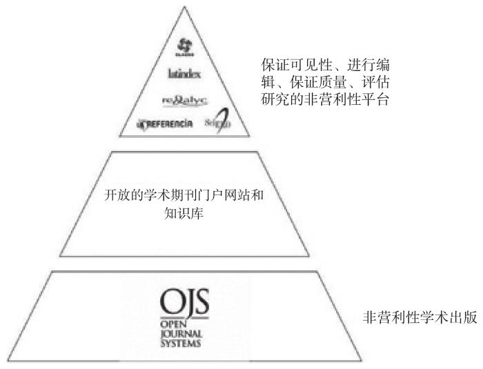 与欧美地区的公共资金大量流向营利性出版商不同,拉丁美洲国家主要将公共资金投入由学术社区管理和控制的开放性基础设施。无论是技术性的基础设施(技术平台)还是社会性的基础设施(标准模式),都有助于集体机构解决社会困境或克服合作的障碍。在充分利用开放期刊平台、知识共享许可协议等已有的基础设施之外,拉丁美洲各国政府和科学共同体正在建立一个覆盖科学交流过程的开放、合作、非营利的科学交流基础设施体系。这一体系提供了一种有效的方法来确保和加强拉丁美洲科学知识的普遍可见性和可访问性。